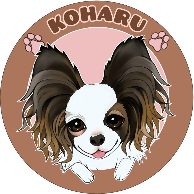 愛犬KOHARUちゃんと愛車をCCKotaと提携しているイラストレーターがイラスト化したところ、奥様がとてもお気に入りとのことでKOHARUちゃんだけのバージョンも追加でご注文いただき、直径8センチのステッカーに仕上げて納品させていただきました。