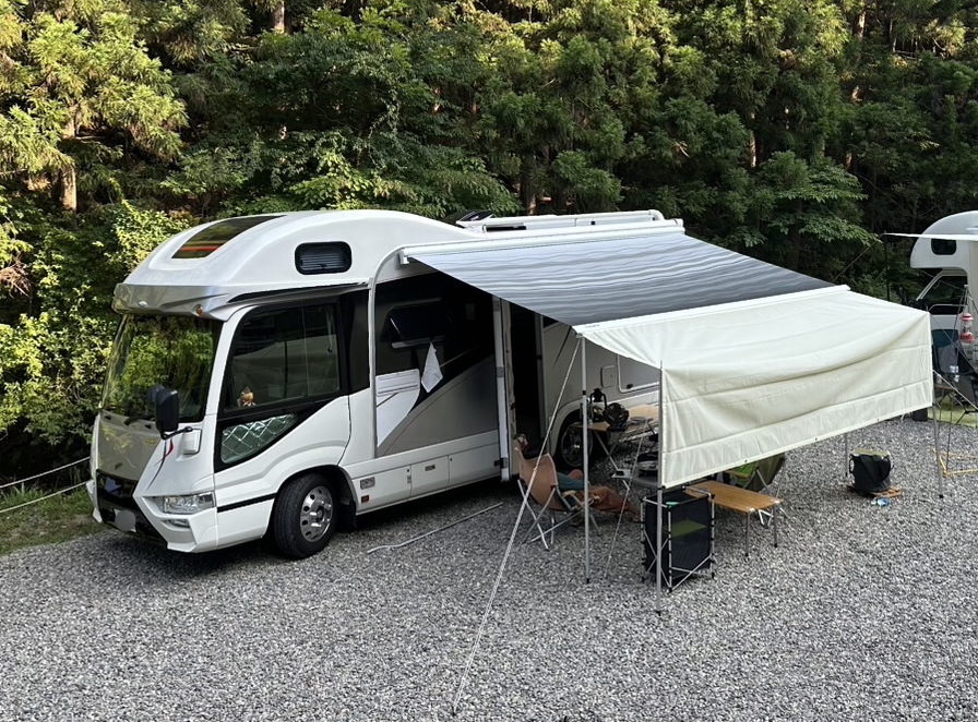 大型のキャブコン、ボーダーバンクス用に3.9m幅のKOMOREBIをお求めいただきました。